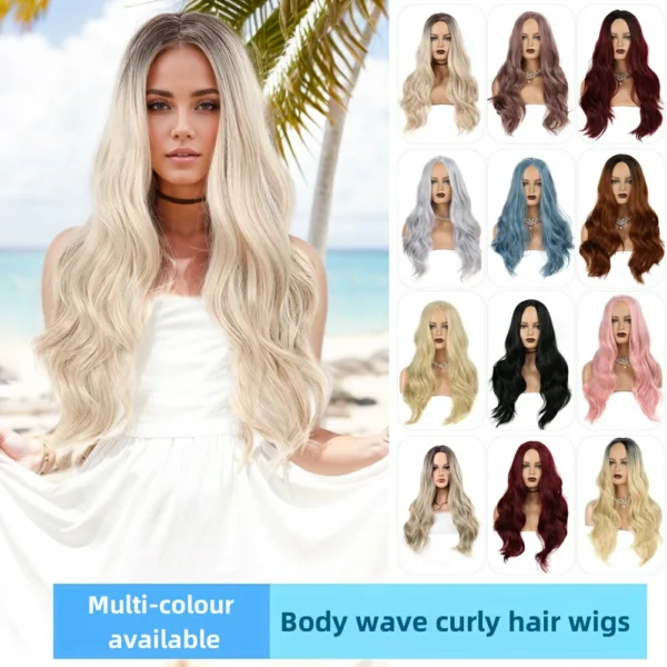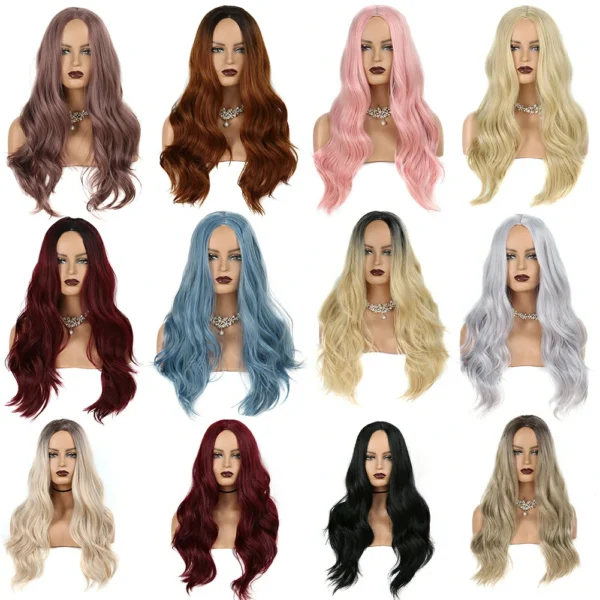 Fashion female gradient middle parted chemical fibre wig