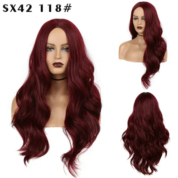 【Name】: Fashion center parted black red white blonde long straight full headset wigs long straight hair